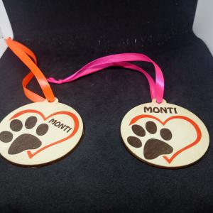Színes fa kutyusos karácsonyfadísz, melyre a kedvenced neve is rákerül.